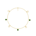 Delicate gold chain anklets featuring alternating Malachite and MOP flower-shaped charms. The charms are evenly spaced and outlined in gold, giving a playful yet elegant touch. This anklet adds a subtle pop of colour and is perfect for both casual and dressy looks.