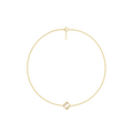 The anklet in the image is a delicate and elegant piece featuring a fine gold chain with a single centrepiece: a white mother-of-pearl four-leaf clover charm set in a gold frame. The minimalistic design gives it a refined and timeless feel, while the clover symbol adds a touch of charm and good luck.