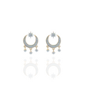 Our Chandbali Mini earrings are a graceful nod to timeless tradition with a modern celestial twist. The design features a crescent moon crowned with a sparkling star and finished with three dangling star charms that move elegantly with every step.