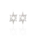 These are striking star-shaped statement earrings crafted in white gold and encrusted with shimmering diamonds. The design features a bold, geometric double-layered star silhouette with an open centre, giving a modern and edgy look while maintaining elegance with the pavé diamond detailing. Perfect for adding a touch of sparkle and sophistication to any outfit.