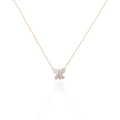 A delicate butterfly necklace, crafted in gold and adorned with shimmering pavé-set diamonds. The butterfly design exudes elegance and grace, symbolizing transformation and beauty. Suspended from a fine gold chain, this dainty yet dazzling piece adds a touch of sophistication to any look, perfect for everyday wear or special occasions.