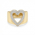 Make a fearless statement with The Ultimate Icon, a bold heart diamond ring crafted in premium 18K gold to command attention. With a striking 14mm height and a substantial weight of 5.5 to 6.5 grams, this sculptural statement ring for women blends timeless romance with modern architecture. The open-heart silhouette framed with shimmering pavé diamonds transforms this gold heart ring into a true icon of contemporary luxury.